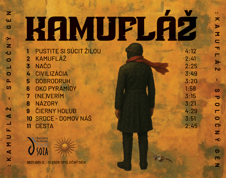 Hudba je náš SPOLOČNÝ GÉN Youtube Spotify Facebook Instagram NOVÝ ALBUM 11. Augusta 2025 uzrel svetlo sveta náš druhý album „KAMUFLÁŽ“ VYDALI SME V roku 2023 sme vydali singel „Srdce- domov náš“ ku ktorému sme spravili aj videoklip. Pozrieť si ho môžeš tu. SLEDUJ Facebook Twitter Youtube
